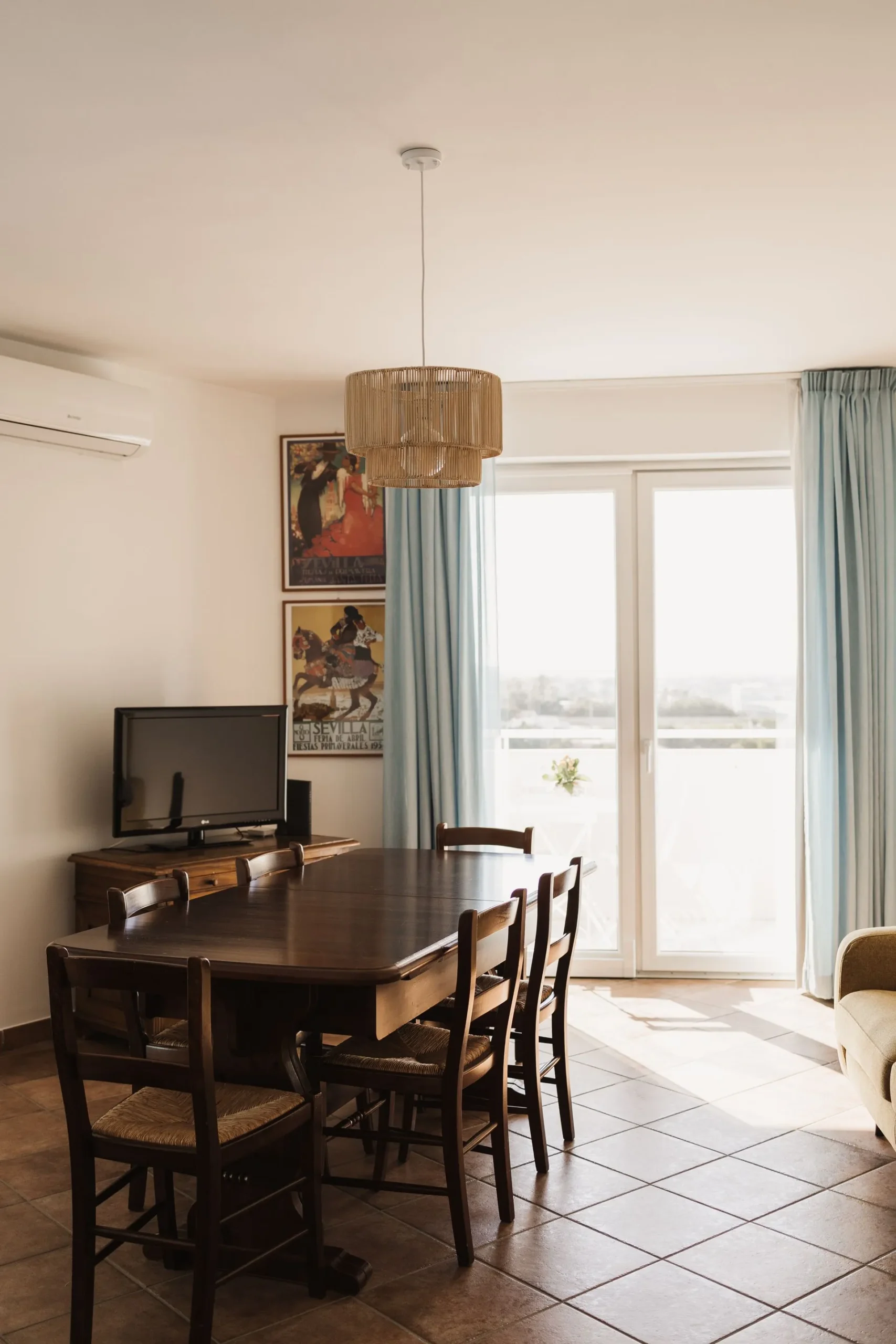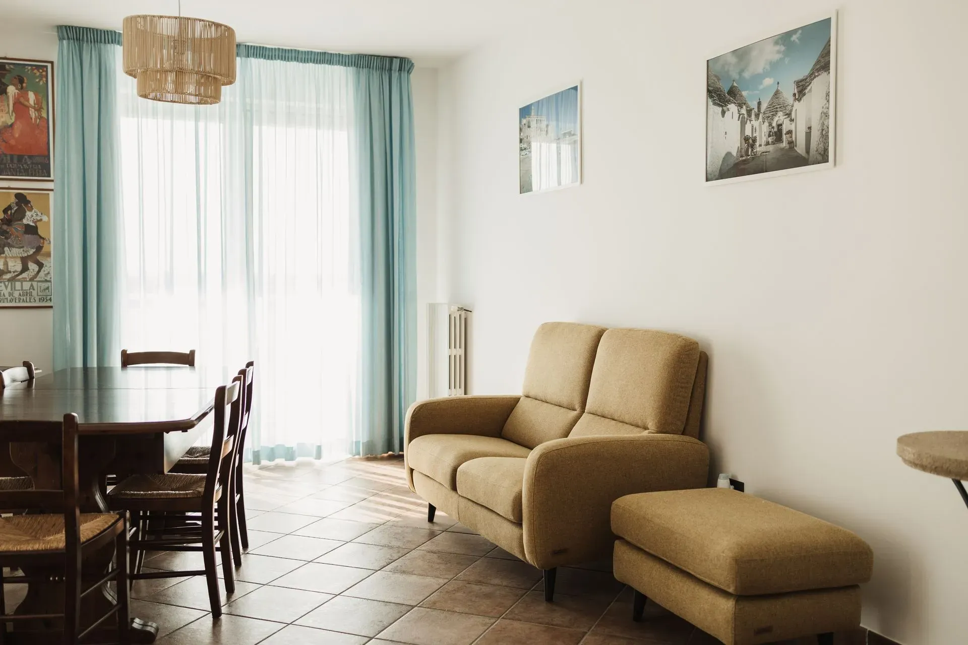 Un ampio e comodo appartamento adatto a famiglie e coppie con balcone vista mare.